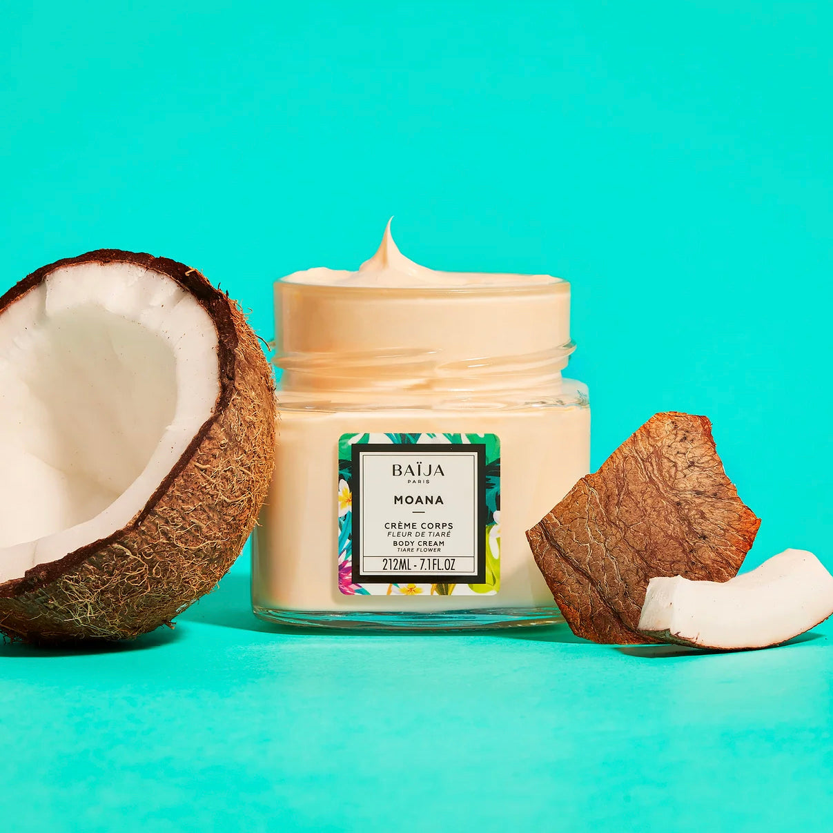 - Vegetable Oils & Butters: Their creams and lotions (like the Moana or Delirium Floral lines) rely on shea butter, coconut oil, and jojoba to create texture without needing mineral fillers like talc.
